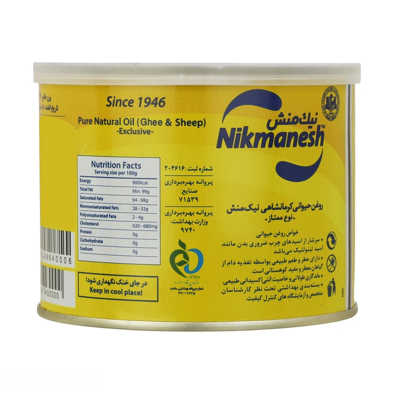 شرکت نیکمنش با پیشینهای درخشان از سال ۱۳۲۴، به عنوان پیشگام در زمینه تولید و بستهبندی بهداشتی روغن حیوانی کرمانشاهی در انواع گاوی و گوسفندی شناخته میشود. این برند کهن با پایبندی به استانداردهای دقیق در انتخاب مواد اولیه و انجام آزمایشهای منظم دورهای، کیفیت بینظیر خود را در هفت دهه گذشته حفظ کرده است. دریافت گواهی واحد نمونه تولیدی در سال ۱۳۹۶، گواهی بر تعهد مستمر این شرکت به ارائه محصولاتی با کیفیت استثنایی و حفظ اعتماد مشتریان میباشد.